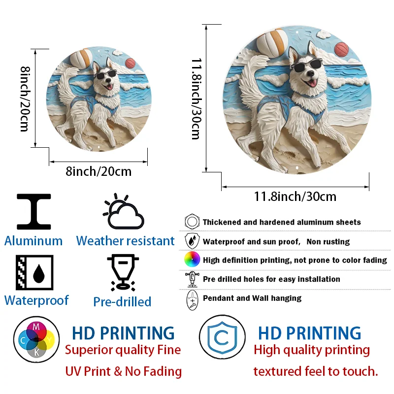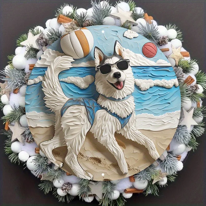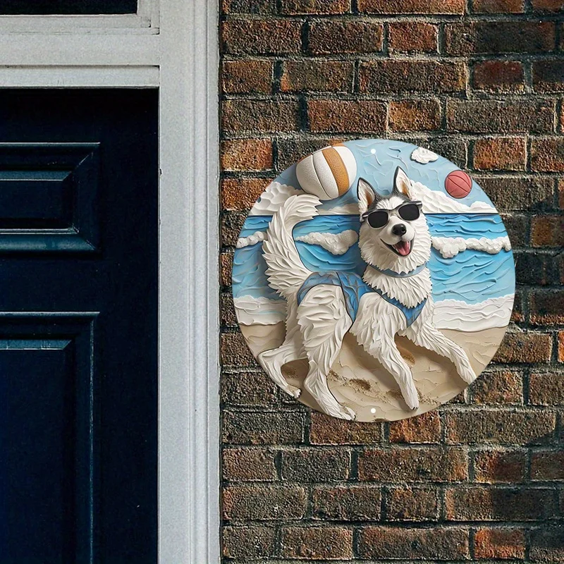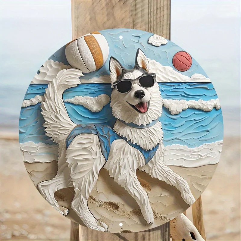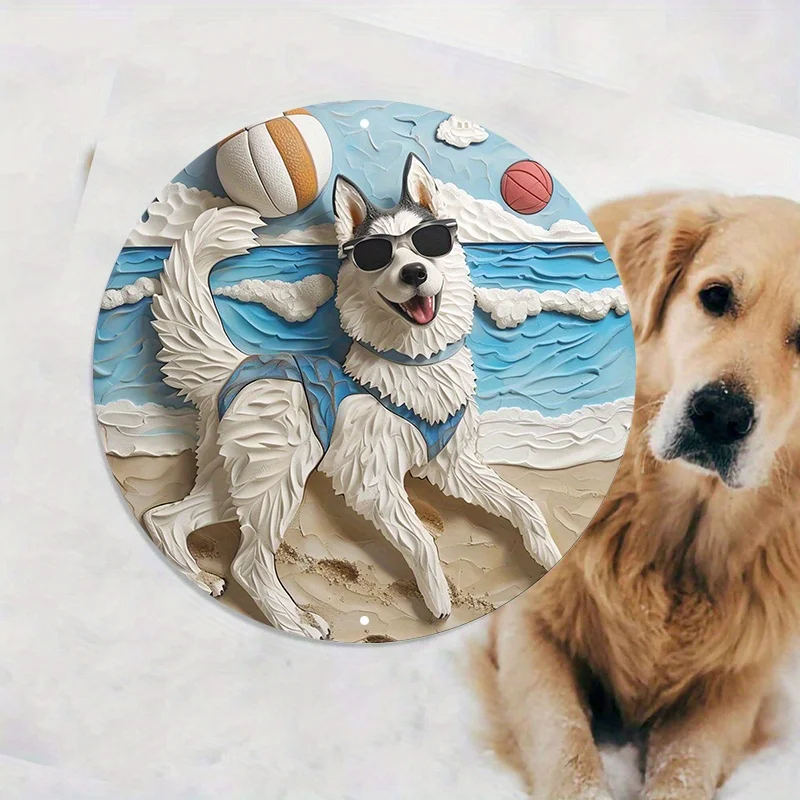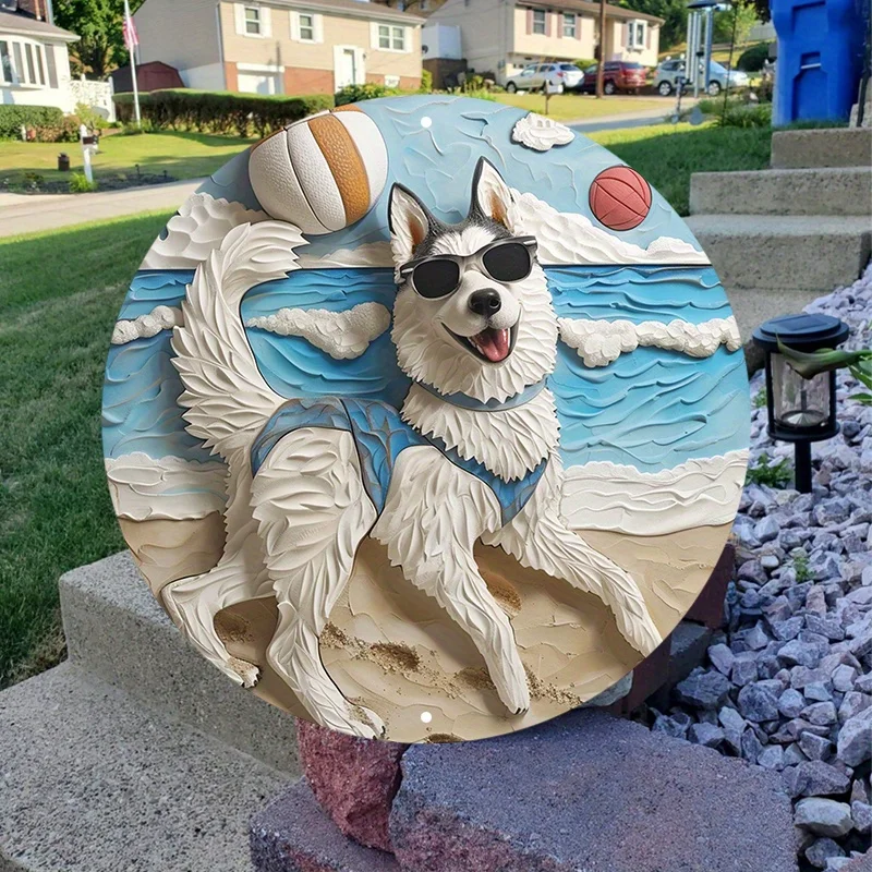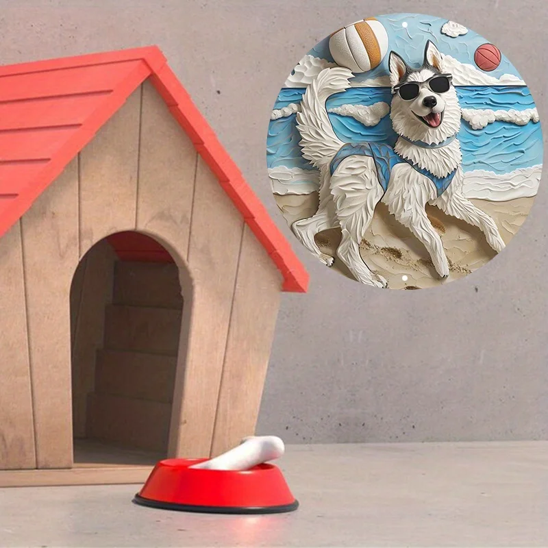 Aluminum Husky Dog Beach Metal Wall Art